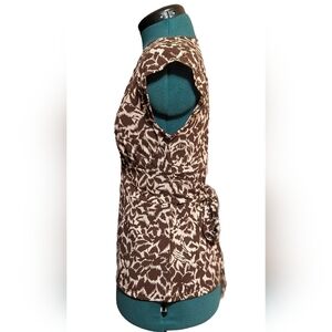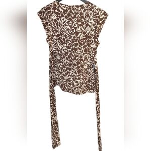 Only worn a handful of times, looks just like new! Abstract pattern is flattering on anyone. The wrap can be tied in the back or front to accentuate your figure - this top would pair best with white shorts, skirt, or pants to make it pop!