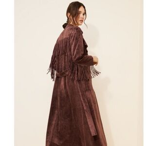 Faux Suede Fringe Trench Coat NWOT COLOR- Chocolate Brown SHYANNE