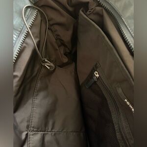 * Smart storage with interior zip pocket and slip pockets, including one for a tablet or small laptop