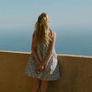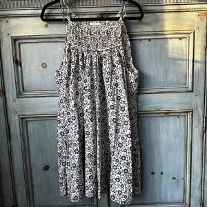 Doen Marjorie Cotton Tie Smocked Mini Dress Cream Jessamine Calico Print Size XL