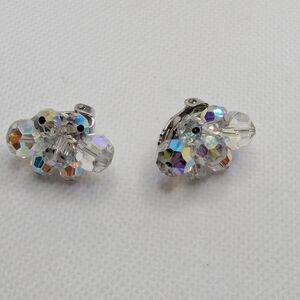 Elegant crystal cluster earrings with a dazzling silver hue. Perfect for adding a touch of sparkle to any outfit. marked Sherman