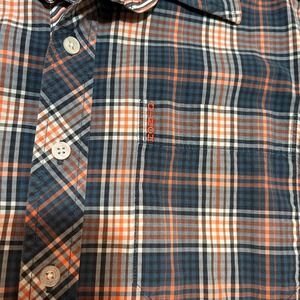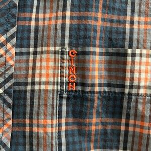 Cinch Men Modern Fit Plaid Long Sleeve Cotton Button Down Shirt XS Orange Blue