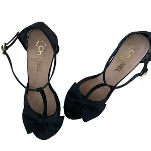 Rare Chanel heels, Chanel CC mesh pumps, Chanel bow heels, Chanel T-strap heels, designer evening shoes, luxury heels, collectible Chanel shoes, discontinued Chanel,high-end designer footwear