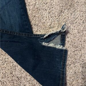 Classic indigo jeans with Cinch branding. Durable fabric and stylish design. The hem of the pants have been cut and there is a zip tie preventing further tear.