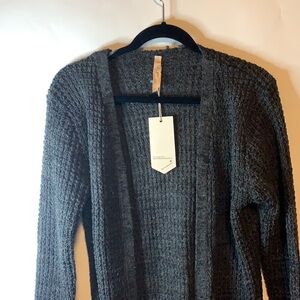 NWT Ashley by International Gray Tweed Chunky Knit Slub Open Front Long Line Cardigan Size Small