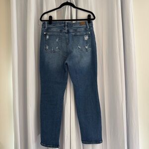 Judy Blue Straight Leg Jeans Rainbow Pocket High Rise Distressed 13/31