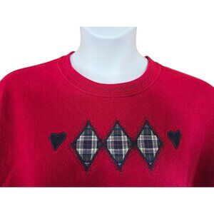 Red Sweatshirt Plaid Argyle Heart Accents vintage grannycore Heavy Blend