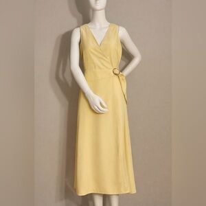 Mango Yellow Wrap Midi Dress | Sleeveless V-Neck | Size S