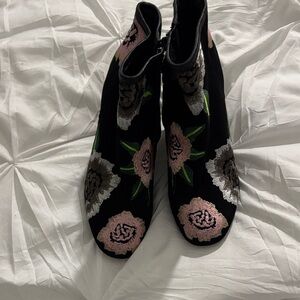 Elegant black booties with floral embroidery. Stylish and versatile.