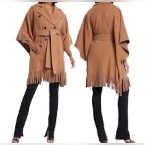 NWT Express Camel Fringed Cape Coat | Size M/L | Belted Poncho Trench