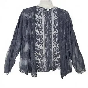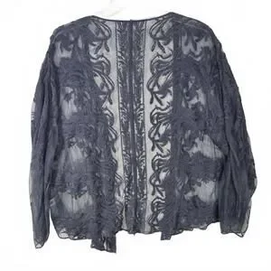 Style: Open Front, Long Sleeve, Sheer, Embroidered
