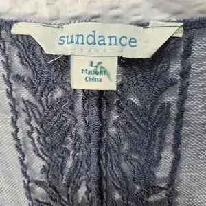 Elevate your layering game with this stunning Sundance sheer mesh cardigan. Featuring intricate floral lace embroidery and a lightweight, ethereal drape, this piece is perfect for adding a romantic, bohemian touch to any outfit. The deep navy/slate blue hue is versatile for year-round wear. Boho, romantic, layering.