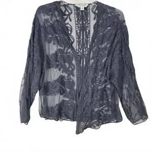 Sundance Sheer Floral Lace Mesh Cardigan Blue Boho Kimono Wrap Shrug Large