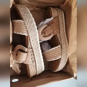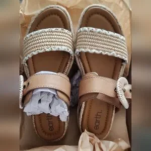 EARTH Natural Leather Colla Platform Comfort Wedge Sandals Women's 7.5