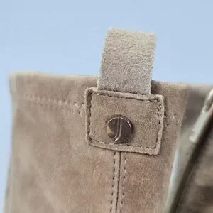 Chic Jones New York Sonjah soft tan suede leather kitten heeled boots. Sleek design with a pointed toe. Ideal for stylish outings.
