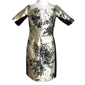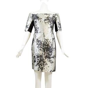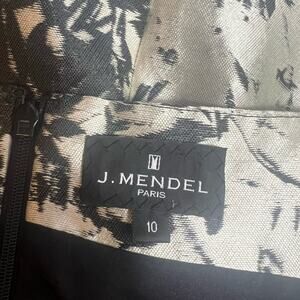 J. Mendel Champagne Black Leather Trimmed Off-the-Shoulder Jacquard Dress Sz 10