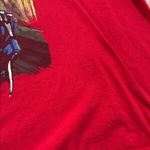 Vibrant red t-shirt featuring Deadpool posing as “The Scream”. Perfect for casual wear and a funny addition to any outfit. Minor staining, but otherwise in good condition with minor cracking to the design