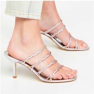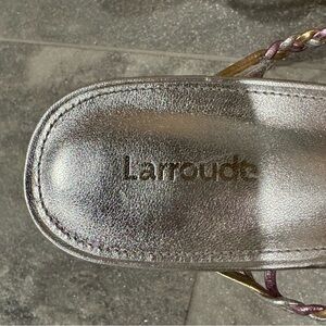 Larroude Ibiza Mules Silver Metallic Woven Braid Strap Heel Sandals size 7