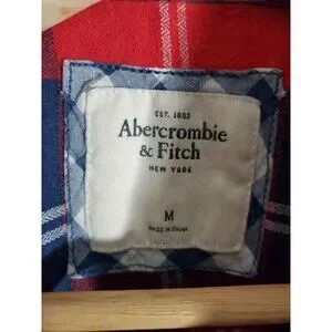Abercrombie plaid shirt mens, A&F flannel button up medium, red navy checkered shirt men M.
