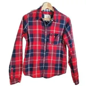 Abercrombie Fitch Red Navy Plaid Button Down M
