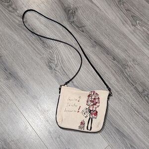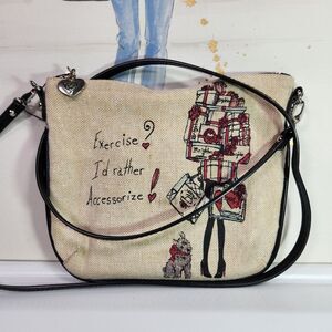 Brighton BLK/RED/TAUPE Crossbody Bag, silver hardware and zipper main closure. No tears or worn areas. Handle drop is 24". Great bag for travel or shopping.