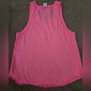 Hot pink tank top with a silver bling stripe, a black bling stripe, and PINK in silver bling. It is in very good condition and can easily fit a medium, as it is oversized!