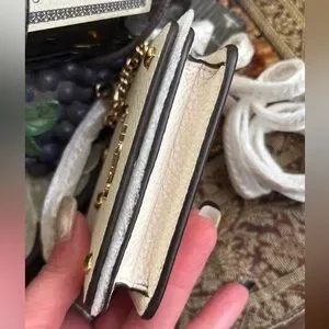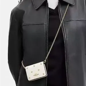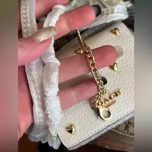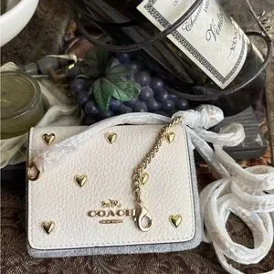 Authentic COACH Hearts studs Leather flap snap wallet on chain