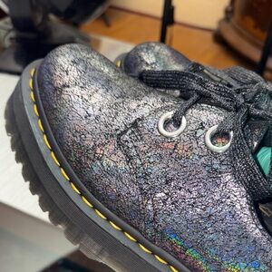 DR MARTENS black Iridescent SIZE 8 US /39 Black Shimmer Lace-Up Shoe