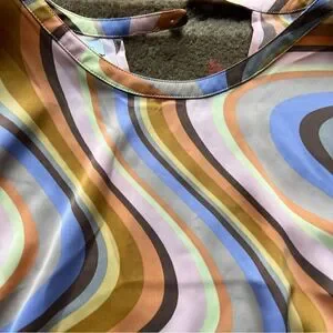 Worn once in perfect condition, super cool patter open back short sleeve blouse with adjustable ties