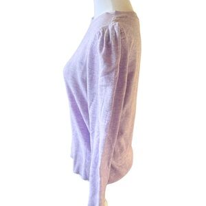 Lightweight lavender sweater with pretty sleeve detail and flattering fit. Easily transitions between seasons. In very good used condition.
