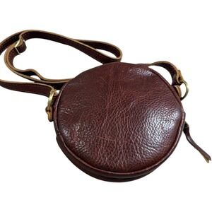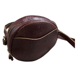 Portland Leather Round Circle Crossbody Bag Brown Leather Adjustable Strap