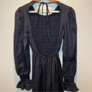 NWOT DISSH Jorja Linen Black Maxi Dress Long Sleeve Open Back Size XS/S