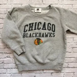 Chicago Blackhawk’s NHL hockey team toddler sweatshirt. Tagged size 4T, measuring 15 1/4” long, 13.5” PTP. In good gently worn condition.