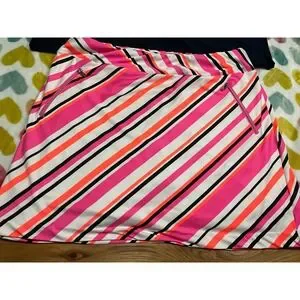 BUNDLE 2PC Tilley Women Golf Skort L Navy & Tail Pink Orange White Stripe size L