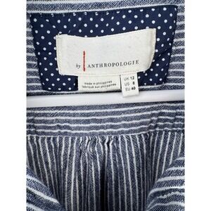 By Anthropologie Striped Linen Blend Sleeveless Romper Jumpsuit Blue White 8