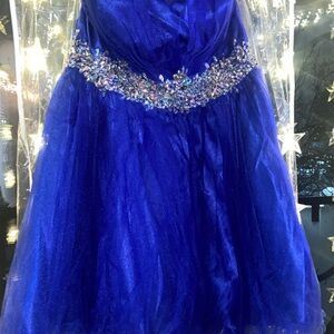 strapless royal blue prom dress