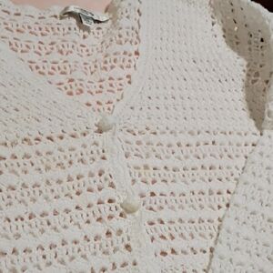 Chic ivory crochet sweater. Ideal for stylish layering.