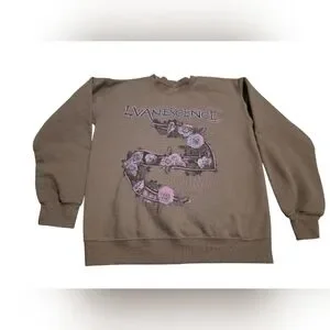 Evanescence Band Gray Purple Floral Logo Crewneck Sweatshirt Size Small EUC