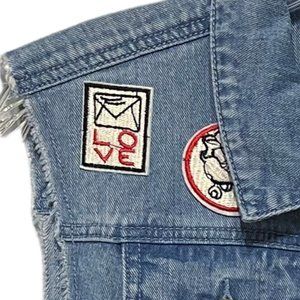 Santa Small Fe Fray Hem Decal Denim Vest NEW WITH TAGS