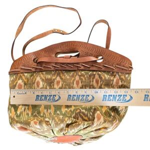 Patricia Nash Boho Woven Leather Trim Shoulder Bag Green Geometric Pattern
