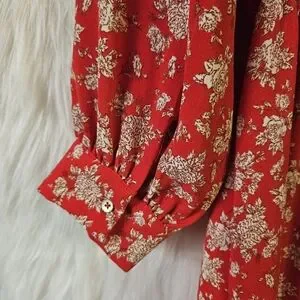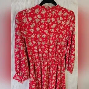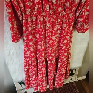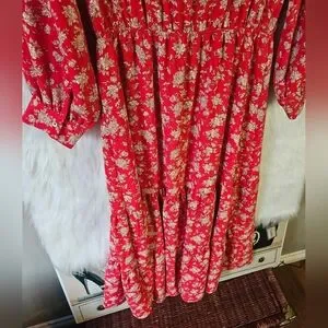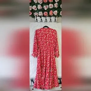 Turn heads in this vibrant red floral midi dress, a bold beauty. The lively floral pattern and the flouncy ruffled hem create a playful, feminine silhouette that moves gracefully with you. Perfect for date nights, parties, or any moment you want to stand out, this dress brings effortless charm and unforgettable style.