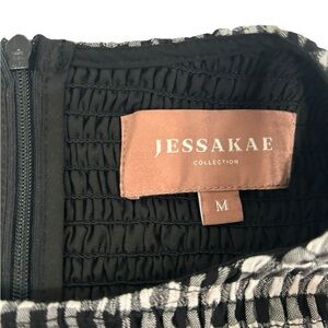 JessaKae Gingham Plaid Dress Smocked Size M Black White Tiered Cottage Milkmade
