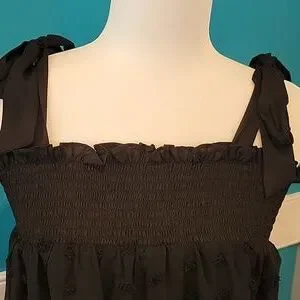 Black Pom Pom Dress with Bow Tie Shoulders 1X.