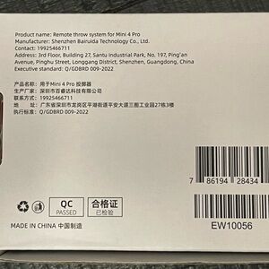 Enhance your Mini 4 Pro with the Remote Throw System. This sleek gray accessory offers precision and reliability for your video needs.