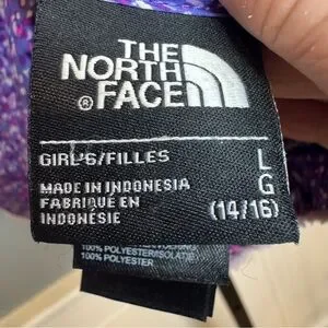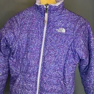 The North Face Girls Reversible Jacket Purple Puffer Fleece Coat Size L (14/16)