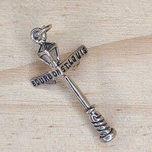 Crafted from sterling silver, this charm features a detailed Bourbon St. Louis street lamp design. Ideal for jewelry enthusiasts or collectors.