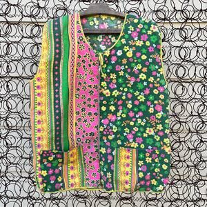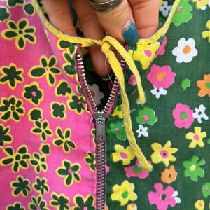 Vintage Ditzy Daisy Floral Retro Hippie Zipper Front Pocket Smock