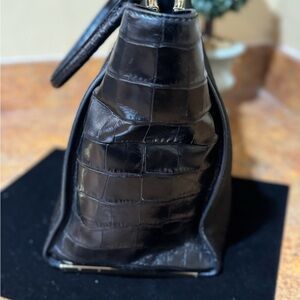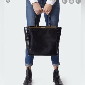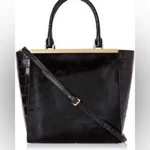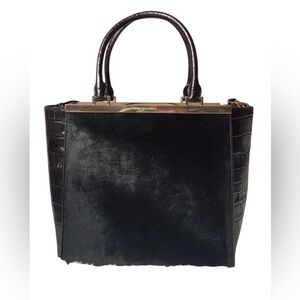 MICHAEL KORS LANA BLACK LEATHER CALF HAIR BLACK CROC ACCENT LARGE TOTE, Vintage