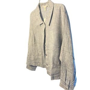 Eileen Fisher Cropped Linen Jacket Top, Chambray Color, Minimalist, Resort, 1X