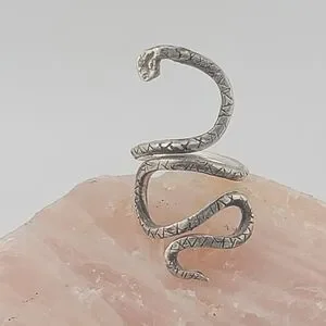 SNAKE ADJUSTABLE RING HANDMADE IN STERLING SILVER METAL SIZE 7 AND UP
